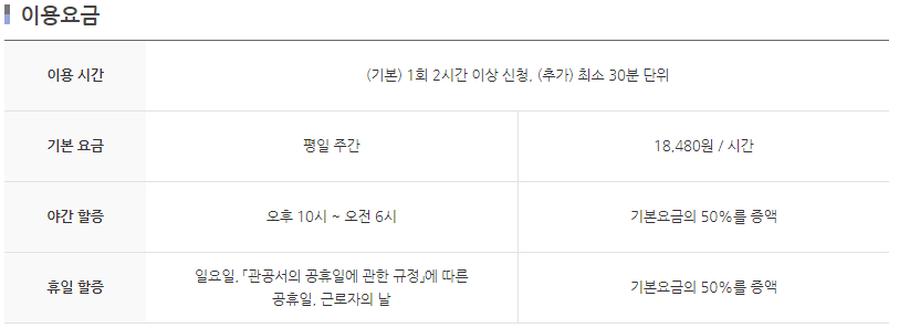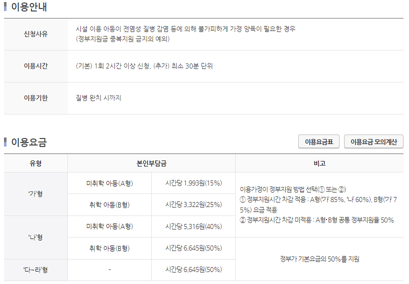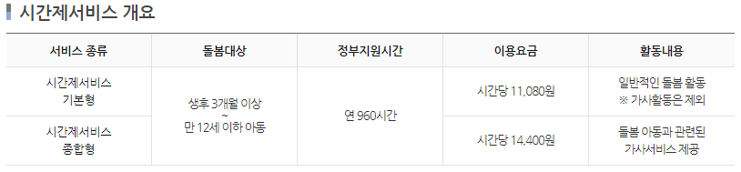 * 정부지원 시간 초과 시 전액 본인부담으로 서비스 이용이 가능