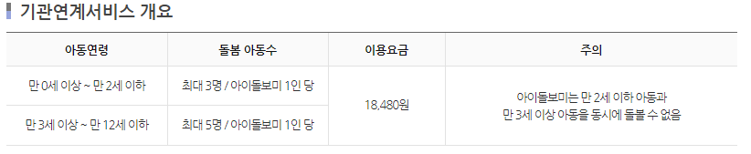 부모의 맞벌이 등의 사유로 양육공백이 발생한 가정의 만 36개월 이하 영아를 대상으로 가정에 아이돌보미가 돌봄장소에 직접 찾아가 돌봄을 제공하는 서비스입니다.