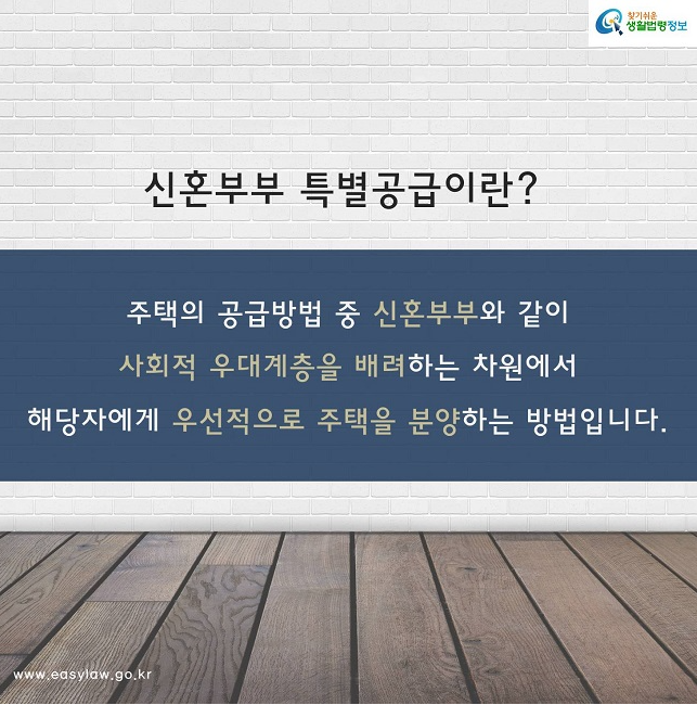신혼부부 > 주거지원 > 주택구입지원 > 신혼부부 특별공급 (본문) | 찾기쉬운 생활법령정보